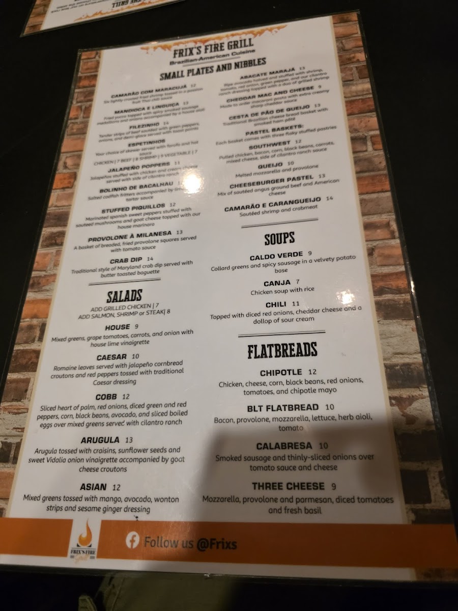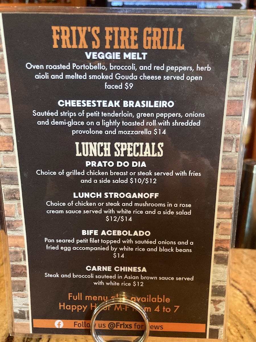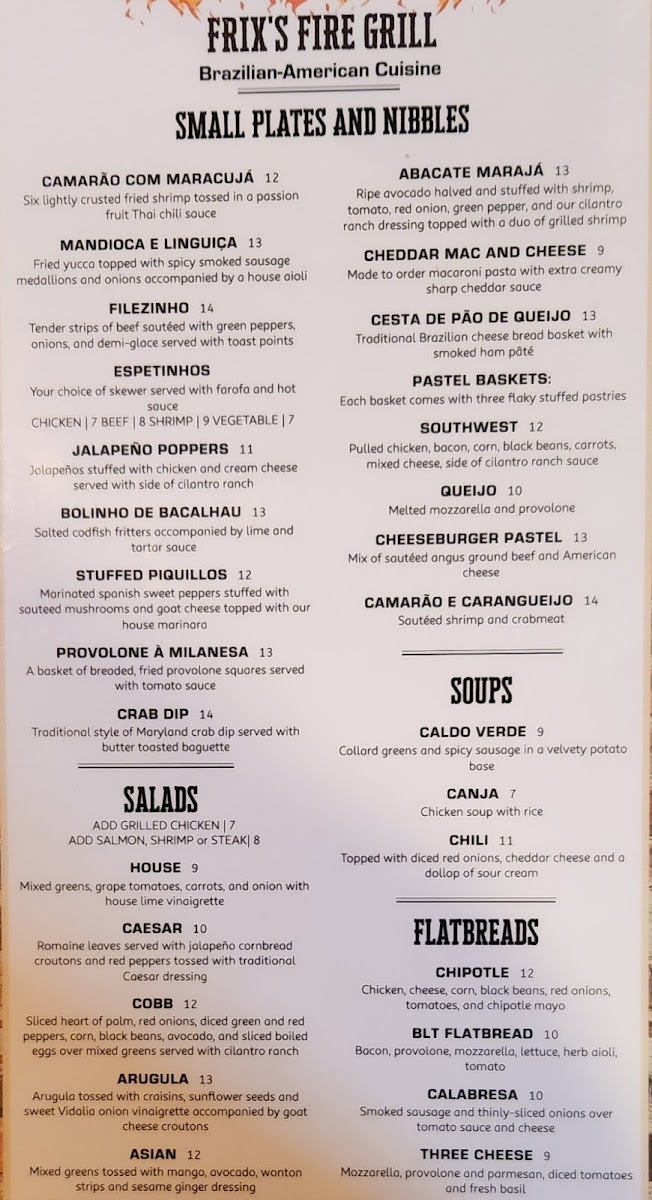 Welcome to Frix's Fire Grill, a culinary gem nestled in Chester, MD. This cozy yet upscale restaurant invites diners to indulge in a vibrant menu that showcases a delightful blend of flavors. The menu features standout offerings like the Southwest Pastel basket, celebrated for its incredible taste, and the tender Bife Acebolado that leaves patrons raving. Families will appreciate the inclusion of actual steak on the children’s menu, a rare find at steakhouses.